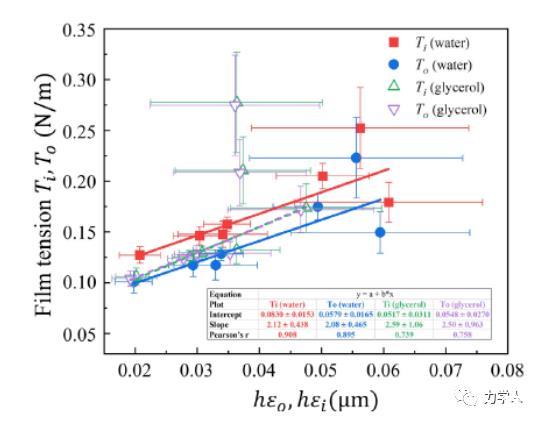 綜上所述,本文基于理論模型揭示了表面張力在調(diào)控液滴-薄膜體系平衡構型的作用機制,首次發(fā)現(xiàn)了薄膜張力隨薄膜鼓包角的非線性解析關系,以此完善了基于薄膜-液滴體系確定固體表面張力的方案,可用于對高分子材料表面張力的實驗測量和探索高分子材料表面張力與表面能的關系。