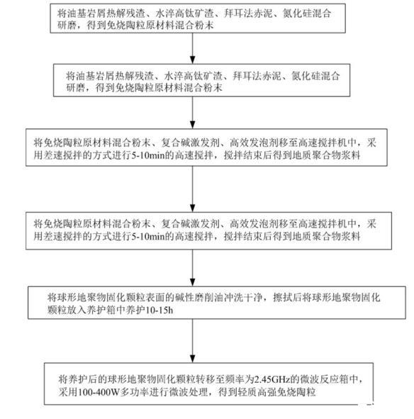 本發(fā)明一種油基巖屑-高鈦礦渣-赤泥基輕質(zhì)高強免燒陶粒及其制備方法,本發(fā)明使用油基巖屑熱解殘渣、水淬高鈦礦渣、拜爾法赤泥作為免燒陶粒的主要原材,能夠促進其地質(zhì)聚合反應(yīng)的發(fā)生,增強對油基巖屑殘渣內(nèi)重金屬離子的固化;